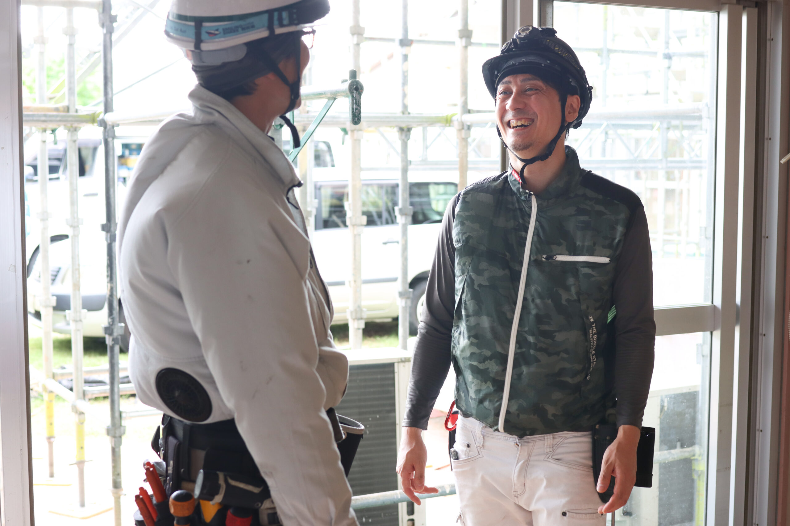 現場にはベテランの方から経験年数の近い方まで様々ですが、年代を問わず和気あいあいとした雰囲気です。一つの現場に対してチーム全員が責任感を持ち、有資格者の指揮のもとで作業を進めています。職人の世界は厳しいイメージがあるかもしれませんが、ここはチームワークが良く、分からないことも聞きやすいため、未経験からでも学びやすい会社だと思います。